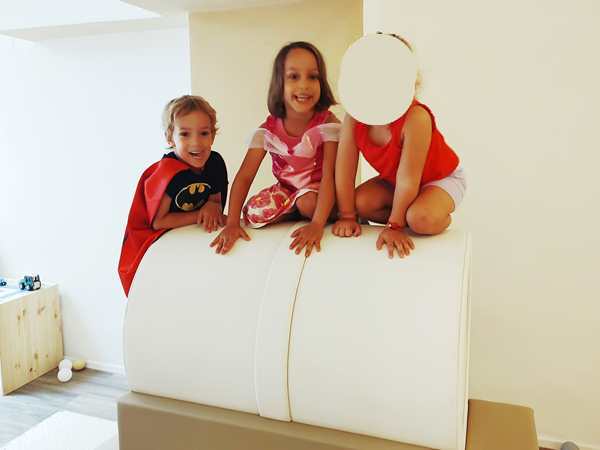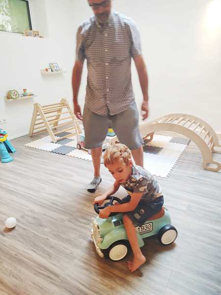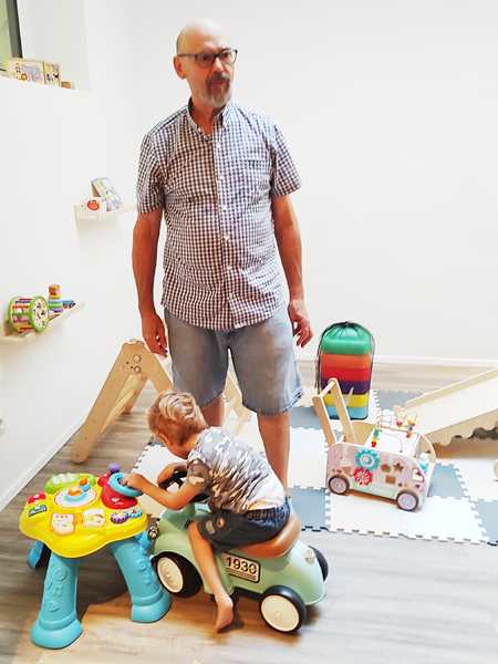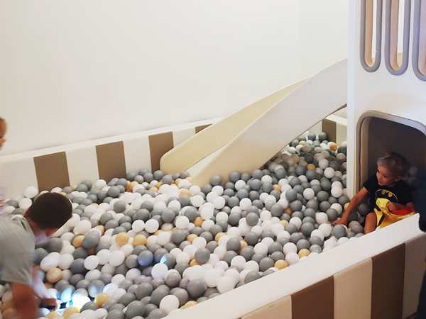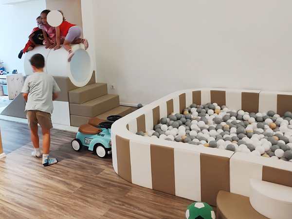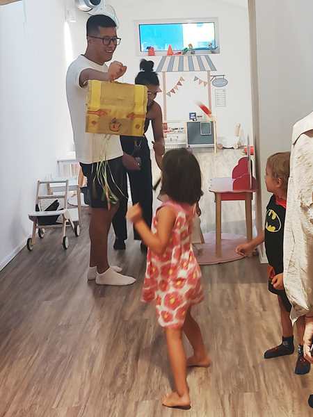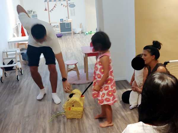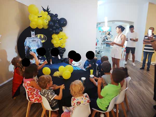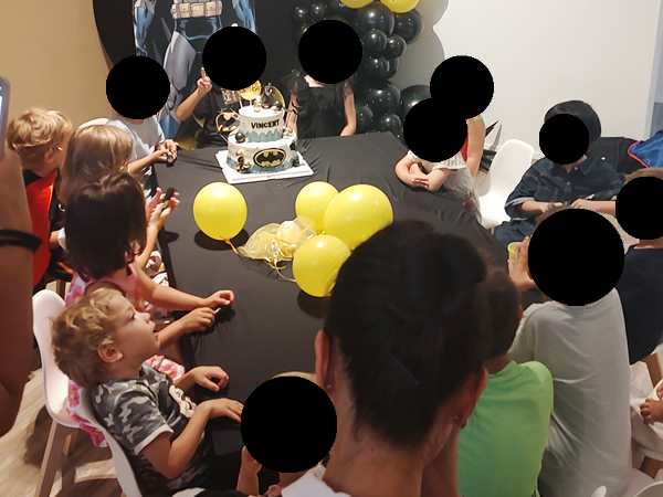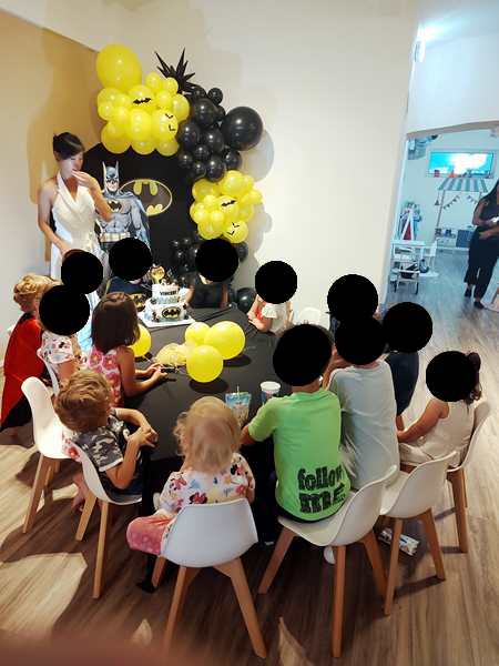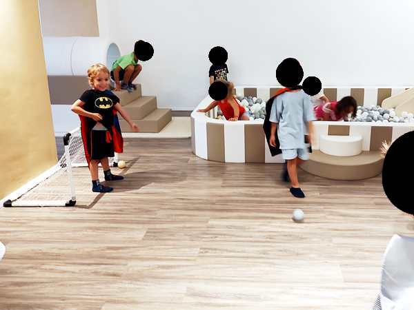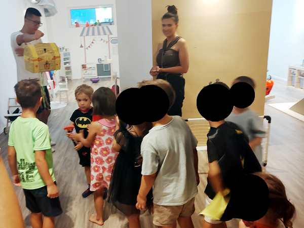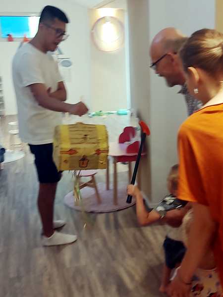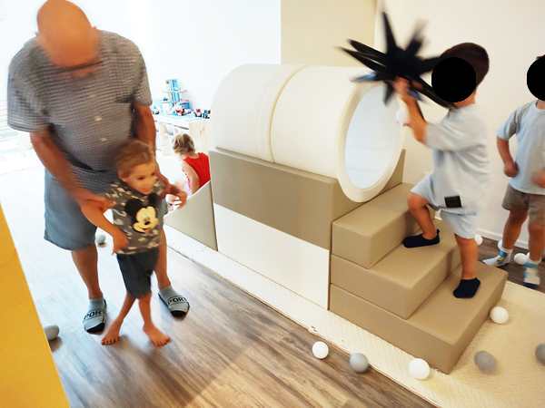 Once I was done teaching, we all got ready and left the house together. We took the subway, then had a longer walk ahead of us. It was really hot. We arrived at our destination exactly at 3 pm, which is when the party started. It was our kids' first ever invitation to a friend's birthday party, or rather their first to a friend's from kindergarten. It was actually Emmy who was invited, but his siblings were allowed to come as well. Tammy knows him as well, as they're all together at kindergarten.