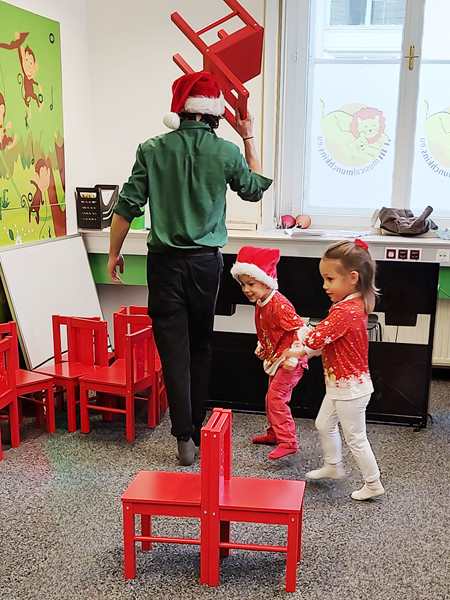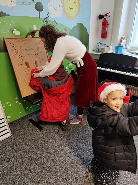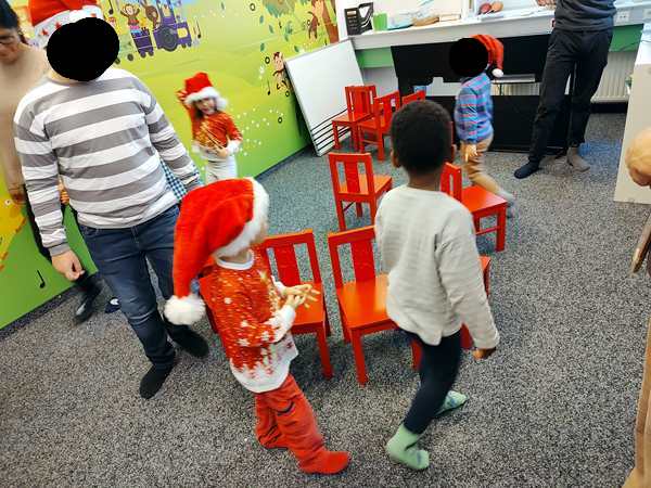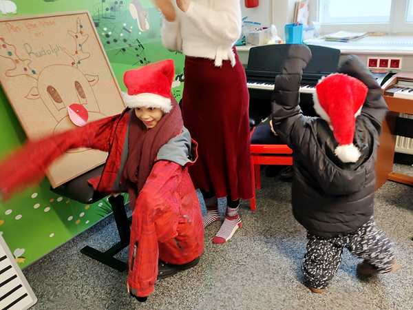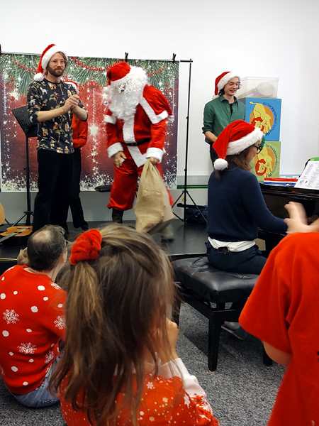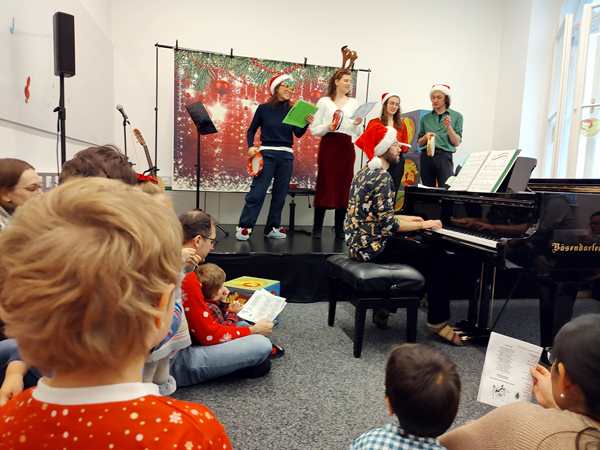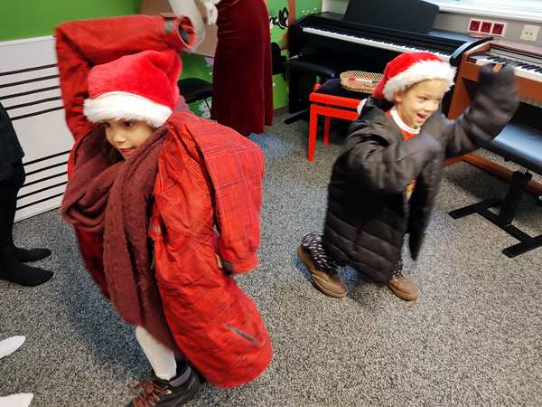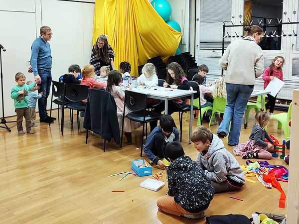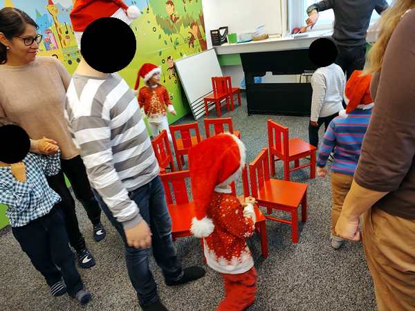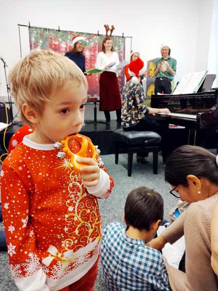 And so we got to the music school over 10 minutes before the party was to start at 10 am, and we were the first in line. Soon more and more people were coming and standing in line with us. Just after 10 am they finally let us in. We handed in our tickets and took our coats and shoes off. Then it was off to the rooms for the different activities.
