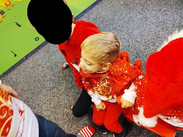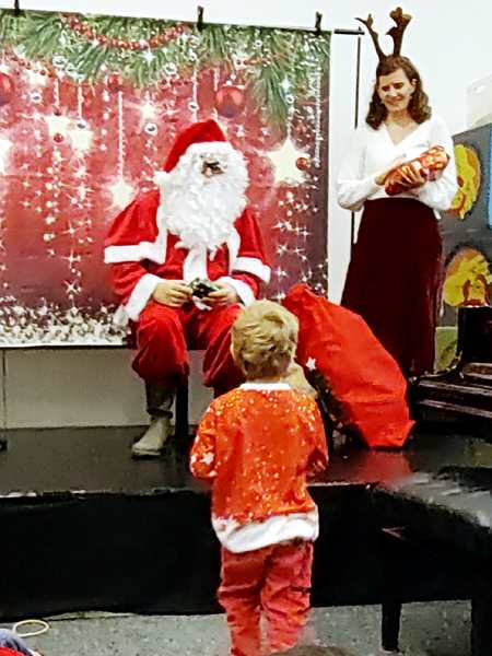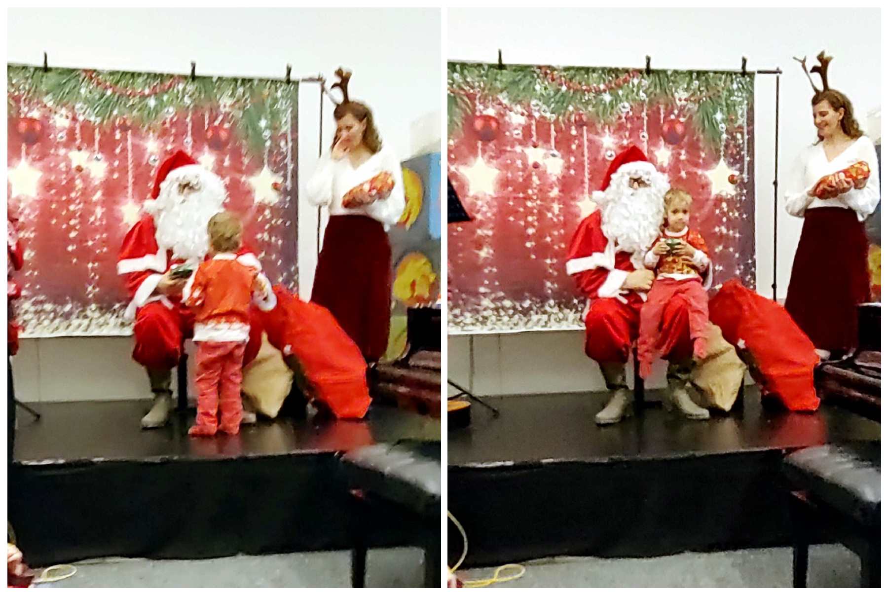 After Santa Claus was done, he said good-bye and left through the door. The kids were not giving him any more attention anyway, as everyone was busy with their gifts. Everyone left the room to put their coats and shoes back on and go home, and we did the same.