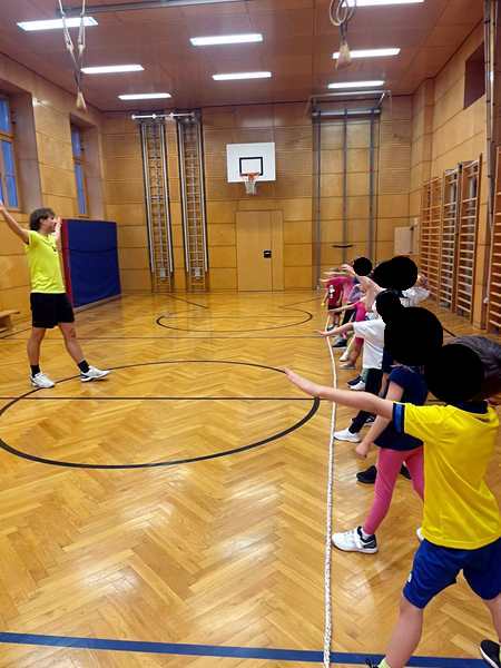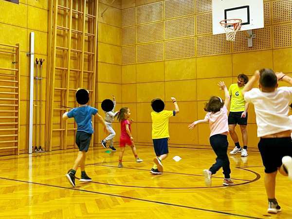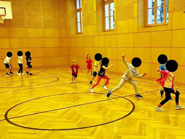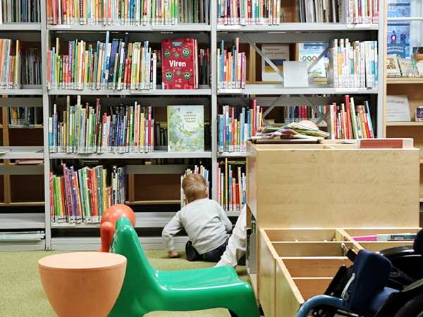We reached the school early and took our time taking their coats off and putting their exercise shoes on. Then I took them to their locker room, where we left our jackets. The teacher was already there, so I left, and the three of us went to the library on the bottom floor. I sat down by the boxes of books with Sammy, and he started pulling one after another out. I'd open them and try to read them to him, but he was not interested. He just wanted to pull them out. After some time Randy took Sammy, and they ended up sitting on the floor, where Sammy could freely pull books off the shelf. But he kept asking for Emmy, and so we finally went back upstairs. When we got there, Tammy was already outside and waiting for us. We put all their coats and shoes back on and left the building to walk back to the subway.