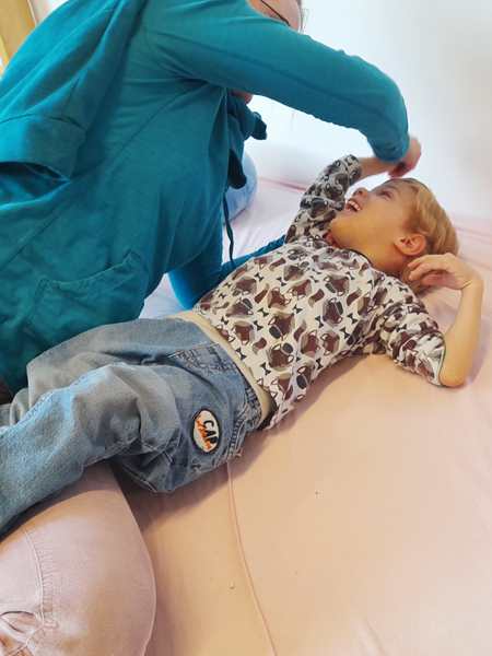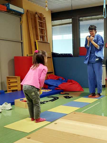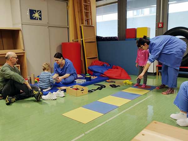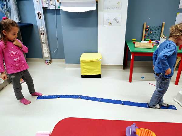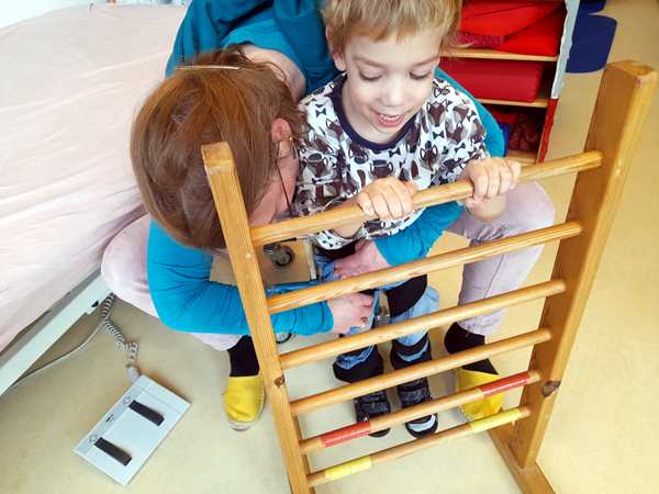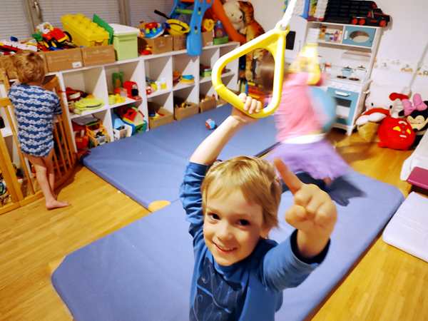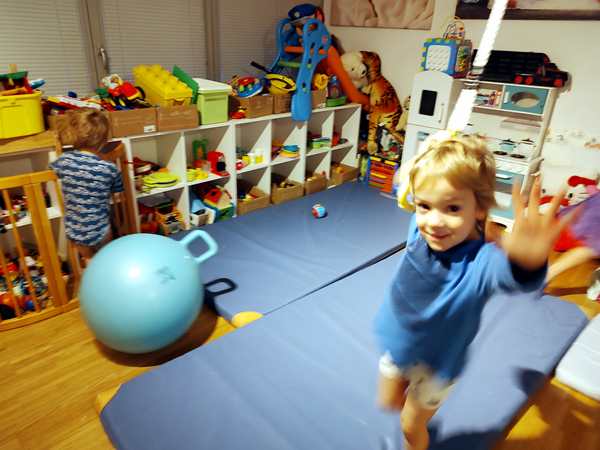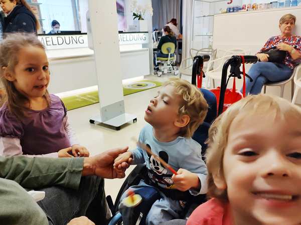 We then returned to the first room, where another physiotherapist started doing physical stuff with Emmy that I could watch, like jumping on squares and the like. I found out that the other therapist had more questions for me, so I continued answering questions. In the end I was told that it would be a good idea for Emmy to have a few fine motor skill therapy sessions. However, there are long waiting lists everywhere, so that would take a while anyway. As for Sammy, they thought he could eventually go to an integrative class, when he starts school. That would mean being the one special needs kid in a normal school class, but with an additional teacher that is just there to help Sammy keep up. As he still has 2.5 years before he has to start school, there is still time until then. The other two will probably start school in 1.5 years.