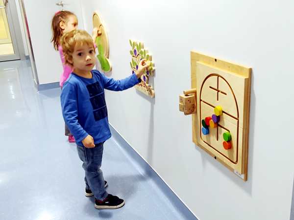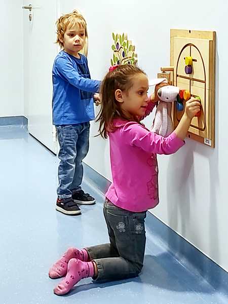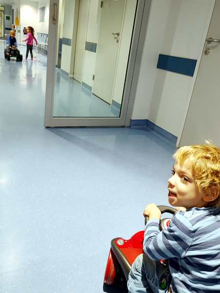 We had to return to the waiting room for some time, and the kids took advantage of the games on the walls, as well as the vehicles to sit on and move with that they found. We didn't have to wait long to be called back into the room.