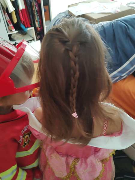There was not much time to rest after lunch. Randy closed his eyes for a little bit, while the kids were on their tablets. Then I got them ready to leave, putting their costumes on them. At 2:15 we left the house together. We got on the subway, then had to take a bus. We had just missed one and had to wait nearly 10 minutes for the next one. Still, we got to the dancing school right on time.