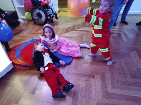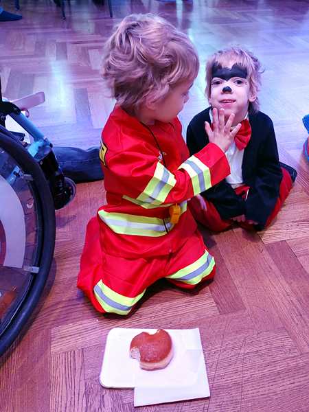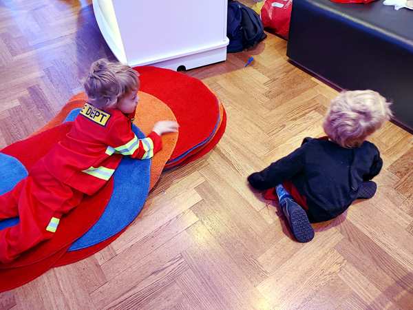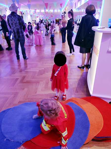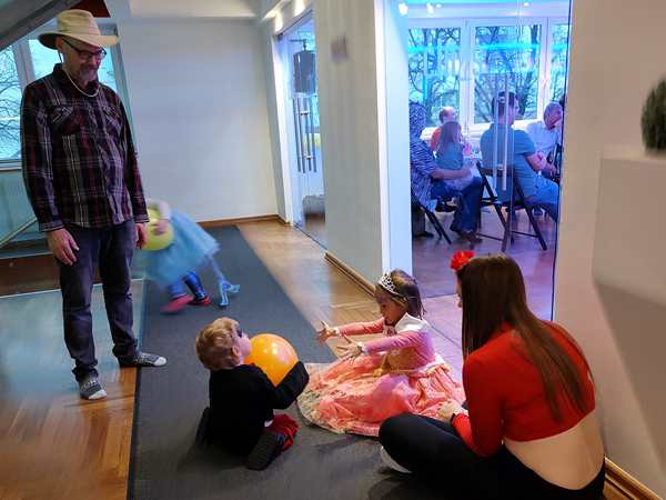 Then the program continued with more songs/dances. Our kids preferred playing with the balloons. Sammy was cranky, whenever he was with Daddy, as he wanted to be with me, and so I was playing with him, making him laugh and have fun. We ended up right outside the dance hall and had fun there, together with Emmy who had joined us. Tammy then came as well, and then one of the teachers sat down with the kids. We didn't know her from our time there, but she showed real interest in Sammy. She was playing with him and talking to him until the end at 5 pm. Then we went to the locker room to put our shoes and coats back on and left to go home.