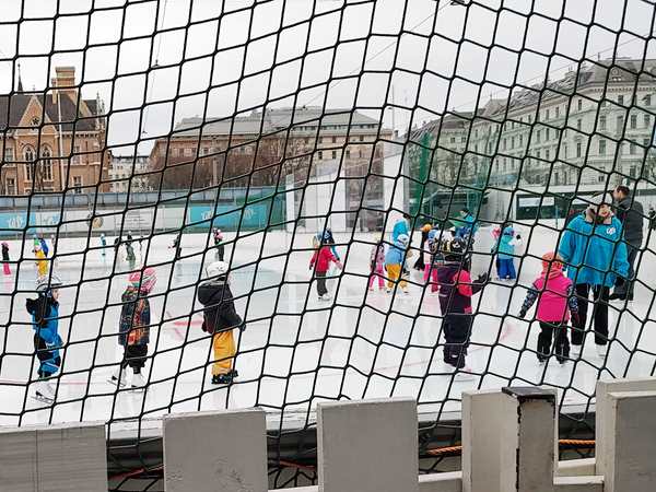 And so we left at 3:40 pm to take two subways and go to the ice-skating rink. We put their shoes, gloves and helmets on and walked to the school area. It was a warm day with 16 degrees Celsius, and so the ice was covered in water. Emmy was not complaining or saying he did not want to go on the ice. I was surprised and impressed. When we reached the school area, they simply walked onto the ice and joined their class that had just started. However, he only stayed on the ice very briefly, before he came back off and walked to us. He said he wanted to drink, drank some, and returned to the ice. A few minutes later he came back again. This time he said his belly was hurting and that he couldn't ice-skate. So he sat down with us to watch Tammy. Emmy returned to the ice one more time a little later, only to return rather quickly again.