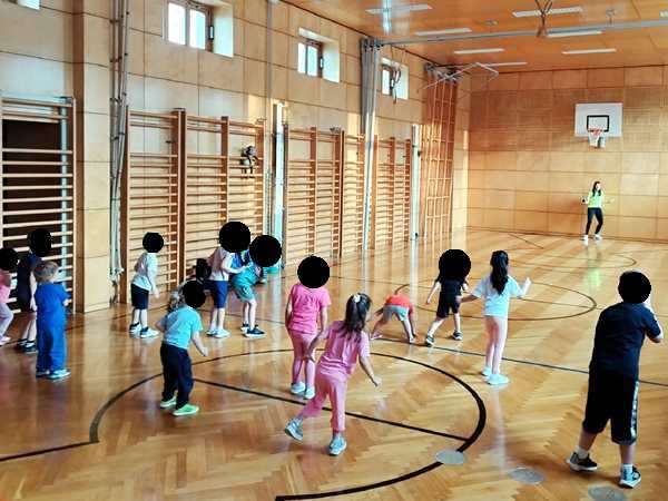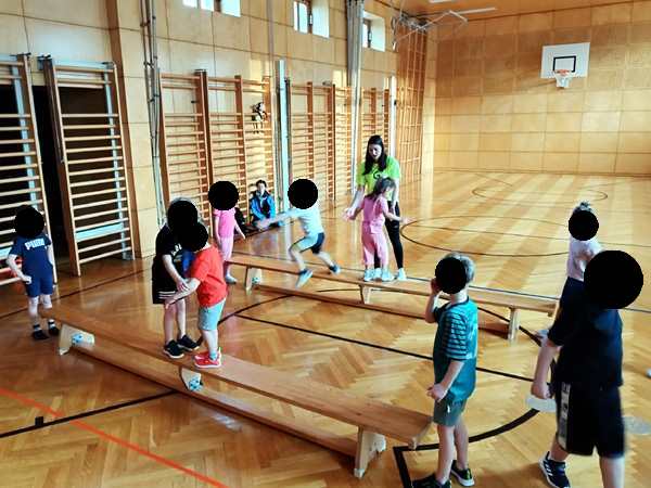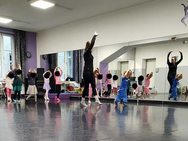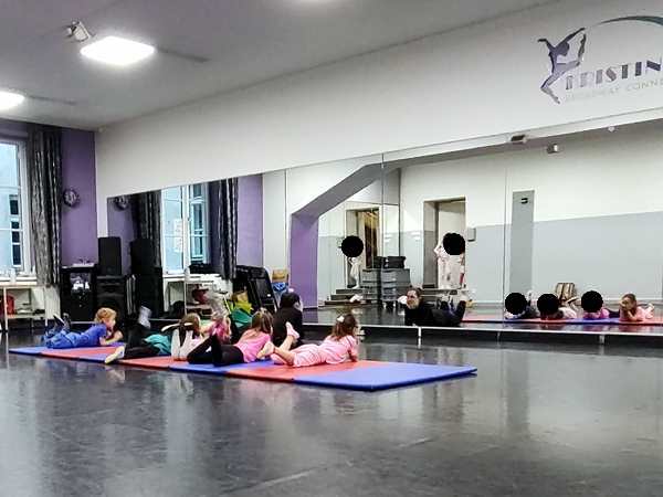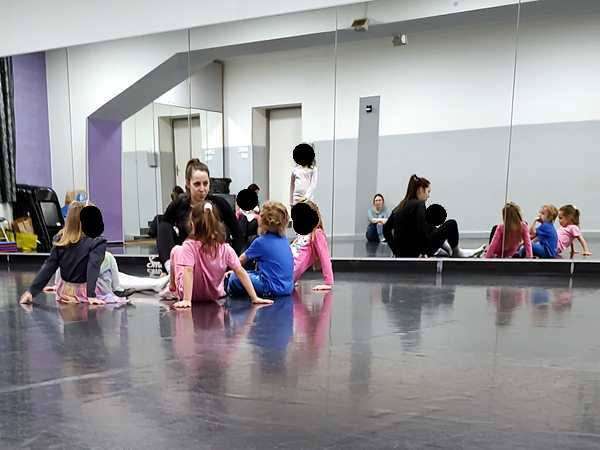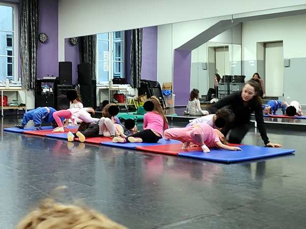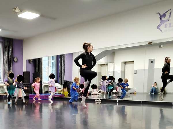 I was done teaching at 3:20 pm and then started getting the kids and myself ready to leave the house. We left at 3:40 pm and took the subway, then a tram, and then walked to the dance school. We got there 25 minutes early, so we need to leave the house later in the future. We sat in the waiting room, where they ate some snacks and looked through the window into one of the two halls, where there was tap dancing class going on. I then showed them some videos of professional tap dancers, as well as of people dancing Rock'n'Roll with acrobatics, as I used to do that in my 20s, and as they are doing some acrobatics in their dance class.