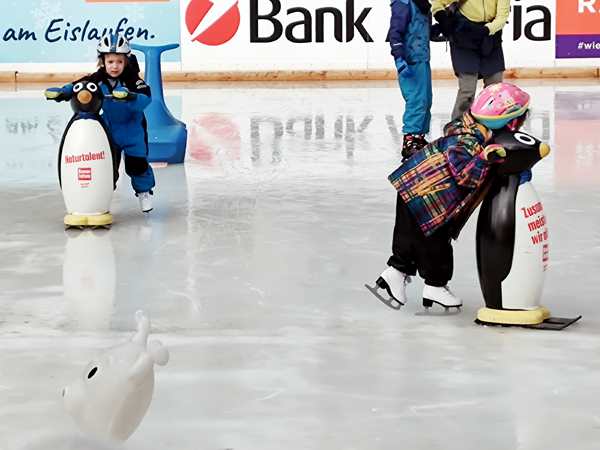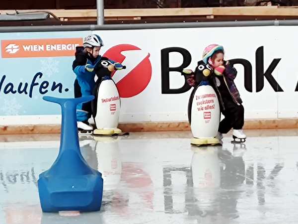 And then I fell. I didn't hurt myself much and was able to get up by myself. But suddenly I was feeling pretty bad and had to get off the ice. I hadn't eaten anything yet today, which usually isn't a problem, but I suddenly felt like I was about to pass out, and so I lay down on the ground. The kids came off the ice and saw me lying there and started screaming. I calmed them down right away. I ate a cereal bar and soon felt better. Then I went back on the ice with the kids. Randy was still rather insecure, which is understandable. He was using one of the animals to hold on to, which really helps.