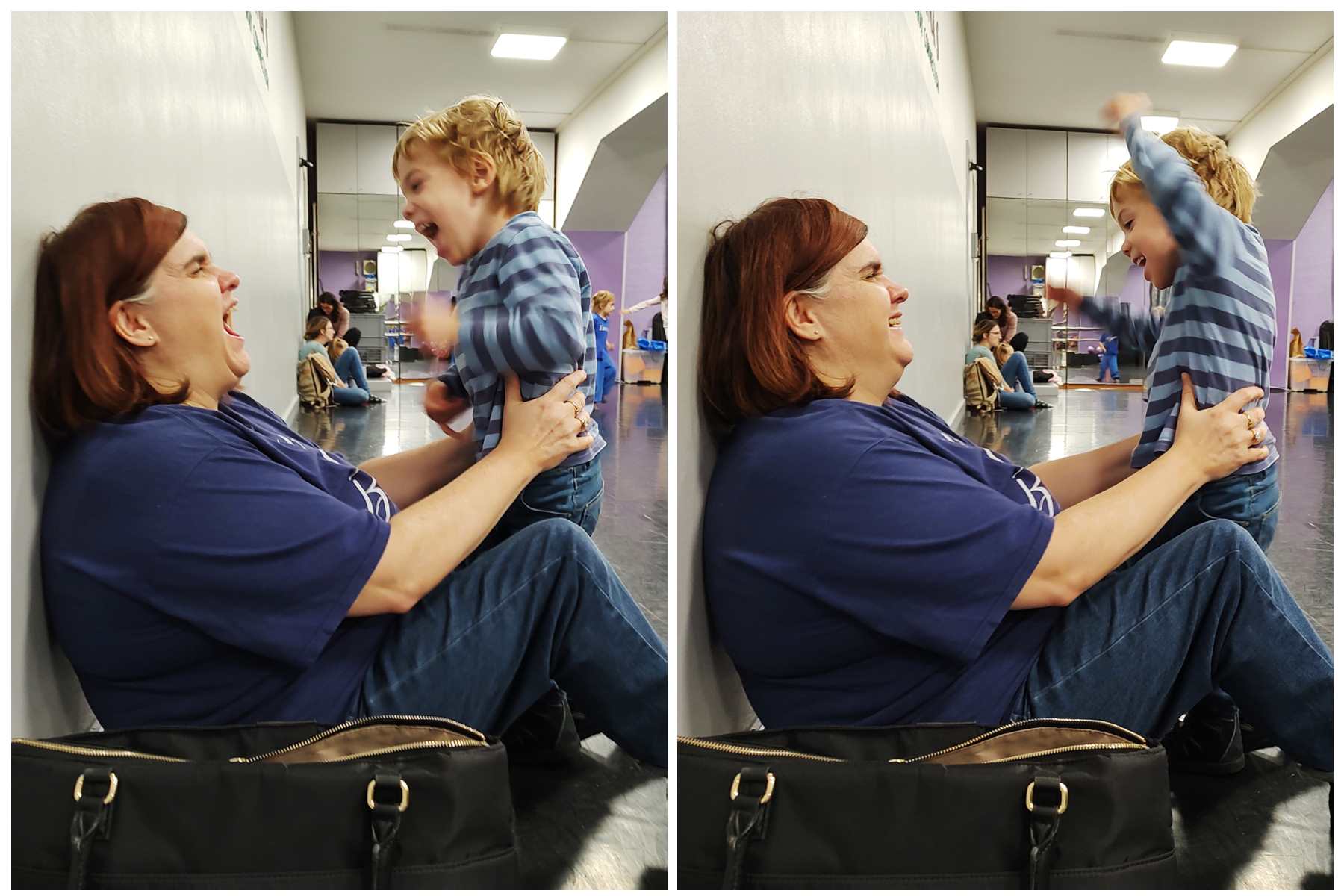 When Randy and Sammy got home at 12:40, we all sat down at the table to eat. Then everyone did different things. At 2:30 I started teaching, and at 2:45 Randy and Sammy left the house to go to his last physiotherapy session, as his therapist is retiring. He was having a good time and received pictures of him with his therapist as a parting gift. After it was over, Randy and Sammy got on the subway to come join us at the dance class.