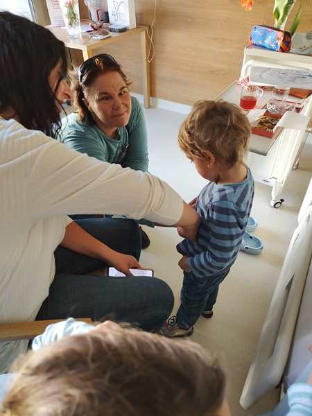 Day 1651. Last night Emmy came to me crying the first half of the night, before going to bed, but he didn't during the second half of the night, after I had gone to bed. This morning Sammy was up first; he had also gone to bed extra early as he had not felt well. Emmy was also saying he was hungry rather early, and so Randy got up to make their breakfast. I still stayed in bed and got up later to get some work done. At 11:15 Randy and the kids came back upstairs. All three made a drawing for our friend we were going to visit, and at noon we left the house.