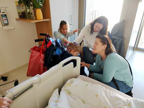 After we had eaten, we left the mall and walked over to the hospital. We asked where our friend's room was and made our way there. We hadn't seen her in months, so it was great to see her again. The kids were really happy and gave her the drawings they had made for her. We pulled up a chair and sat down to talk with our friend. After some time, two more friends of her arrived and joined us. Having talked some more, we then prayed for her. Then her friends prayed for Emmy as well as for Sammy. Then we said our good-byes and left.