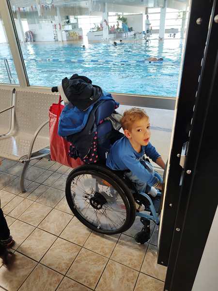 This morning we had to get up and get ready to leave the house at 9:15. It was going to be another hot day, and so we didn't even need jackets in the morning. We took the 9:30 train and then the tram and walked to the swimming pool. In March they only had one swim class, so it felt like it had been a long time since the last one.