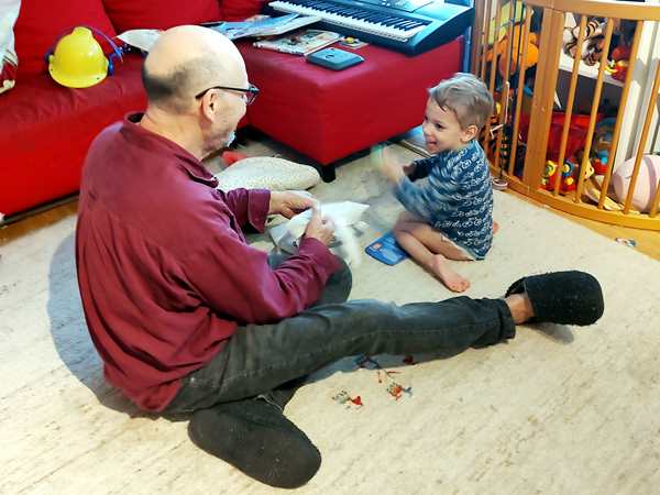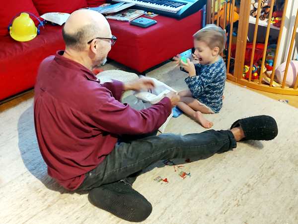Day 1679. I had another terrible night because of the fever. We moved the clocks forward by one hour last night as well. Emmy was the first one up and went to Sammy, so they were both up. Randy then took Sammy's braces off and put him on the floor. Soon Tammy was up as well, and all three kids started looking for hidden Easter eggs everywhere, while we were still in bed. In any case, they kept coming to me with their finds, and as I had hidden the eggs, I knew what was there to find.