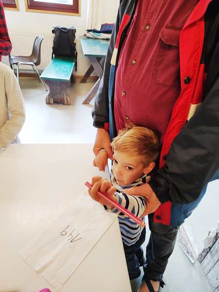 There were tables with paper bags with numbers on them set up, as well as crayons for them to draw on their bags. There were 22 children signed up, plus their parents. The kids picked a spot and a paper bag and started drawing on them until the lady doing the program and the tour arrived to get us started.