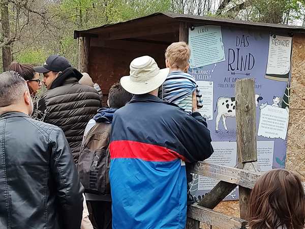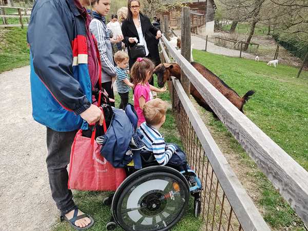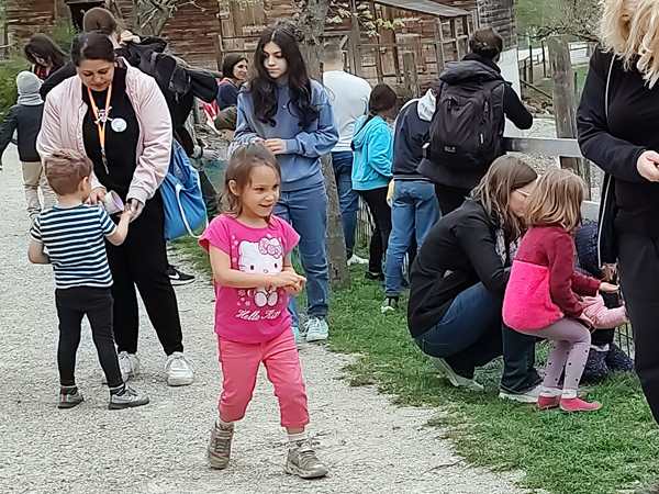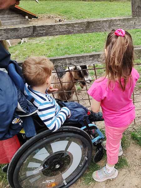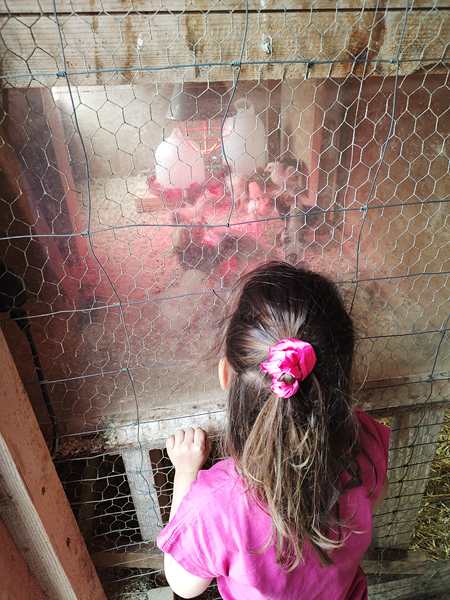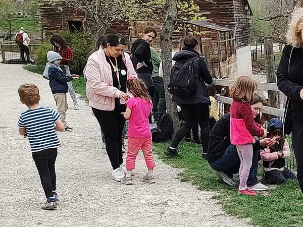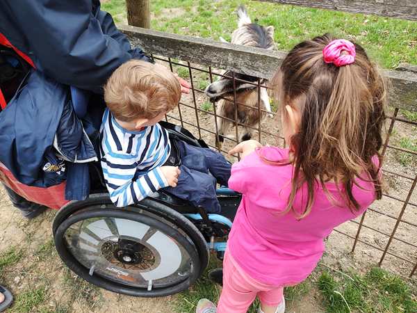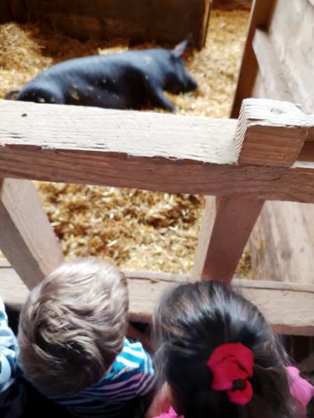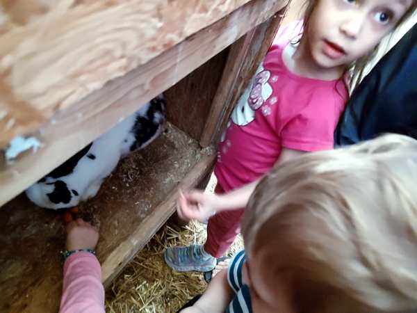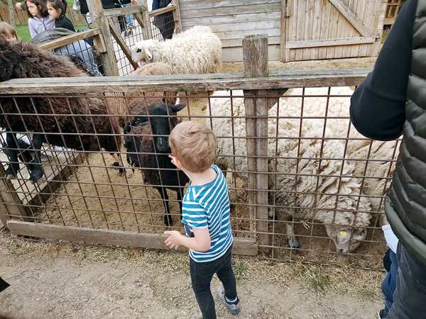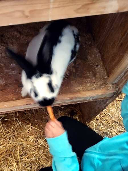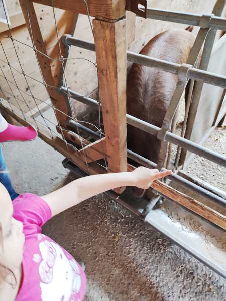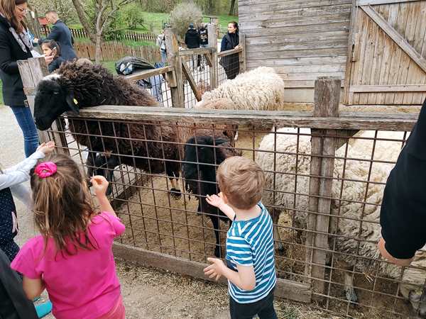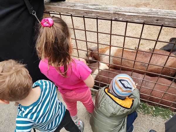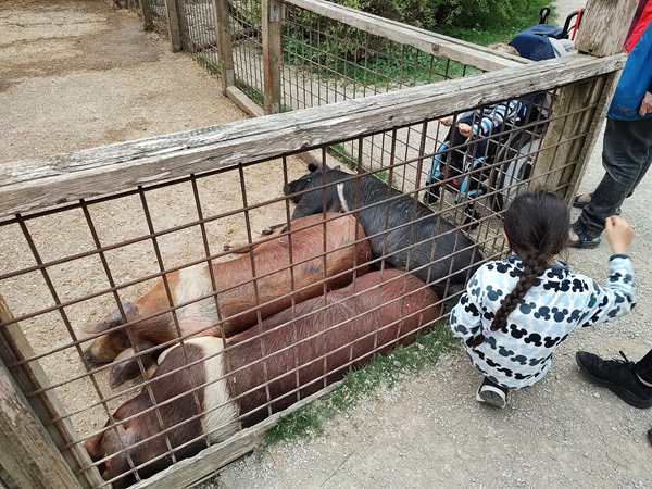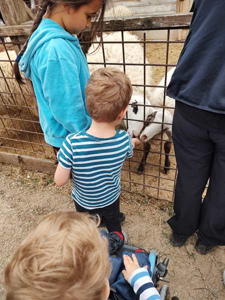 We had a one-hour trip ahead of us, taking two subways and a bus. I had my eyes closed as much as I could. When we got off on top of the mountain, we arrived at just the right time. I had registered us for a special event at the petting zoo. The kids like it there, but we haven't been there in a long time because it's so far from our home. We walked to the entrance and went inside. We paid and went to the area where they told us to wait.