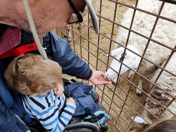 Next came the goats, where they kept getting feed from her to feed the animals, then we went to another enclosure, where there was a baby goat. However, it was an adult goat who came to Sammy, and when it sneezed hard, it made Sammy and Randy laugh really hard.