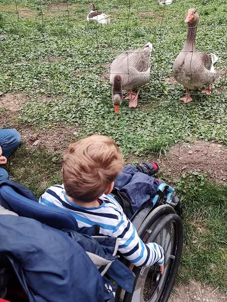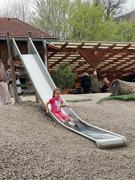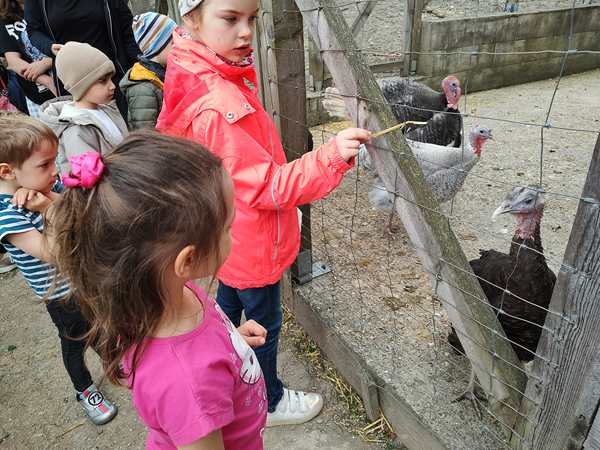 We walked on and saw turkeys and geese. Then the tour was over. Tammy and Emmy wanted to go down the slide, which was the only thing there for them to play with. The rest of us walked inside and saw our Easter pastry waiting for us. I found their three, and we sat down, as they wanted to eat it. At least some of it. And they kept leaving for the slide and coming back for another bite a few times. At 3:30 pm it was finally time to leave.