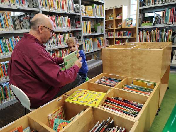 But the kids didn't want to go home yet; they wanted to go in the library right there. And so we went to the kids section, and the kids brought me books to read to them. Randy sat with Sammy where the English kids' books were. We stayed there for some time, then decided to get going.