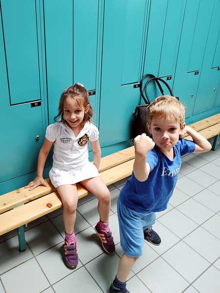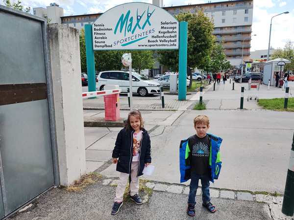 This morning I also had a student at 10 am. Then I got everything ready and grabbed something to eat. At 12:15 I left the house, after Randy had already left the house to go get Sammy. I had to take two buses, but I missed the second one after the first one had been late, so I had to wait for a while. I then got to their kindergarten just after 1 pm. When they saw me, they came to me, they got dressed, and off we went.