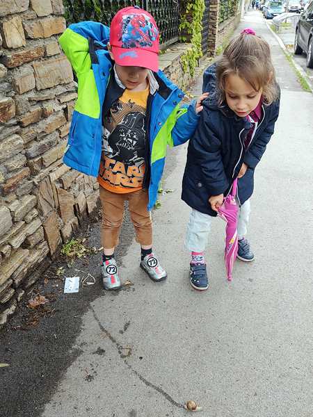 We had to walk down a long road to get to the bus stop. The roads and sidewalks were pretty wet, but thankfully it was not raining. We stopped and took a picture, when we saw a rather big snail crossing the sidewalk, leaving a trail behind her. The bus was already sitting at the bus stop, so we can to make it and were happy that the last row was empty. It was the perfect spot for us to sit. We had a 15 minute bus ride; the kids were talking and eating snacks. Then we still had to walk a bit to get to the sports center. I was surprised, when I looked at the time, as we had arrived much earlier than usual. It was their fourth time there today.