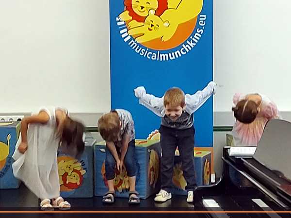 And then the time for the first song had come. Their teacher sat down at the piano to play, and the other teacher did the hand movements to help them. However, they kept looking at the director, who has written the curriculum, and who was also showing the movements. Before they started, she told the kids to smile. It was pretty obvious that they were all nervous. They did well, though they sang a little timidly and also made the movements timidly. Emmy barely moved, which is not at all like him.