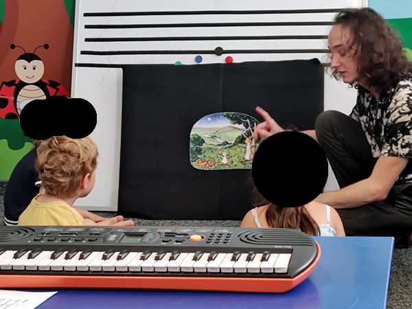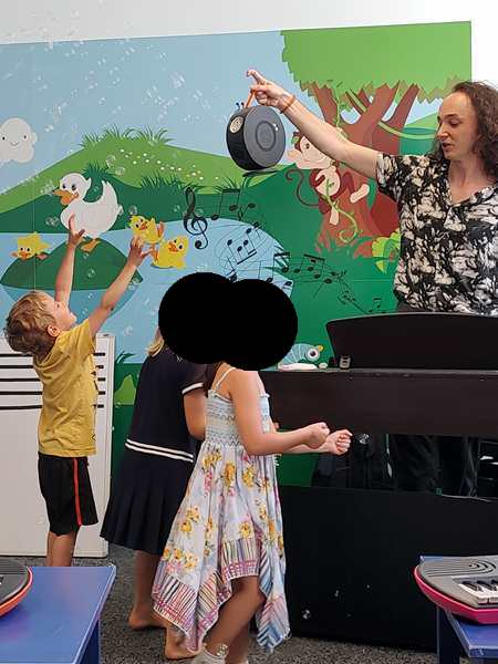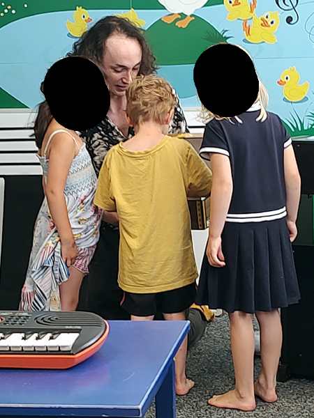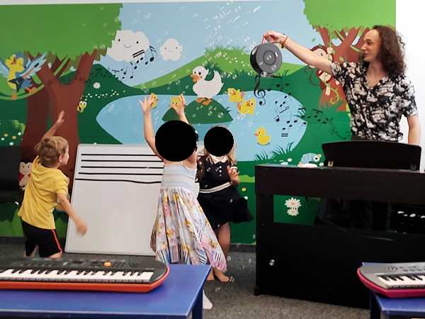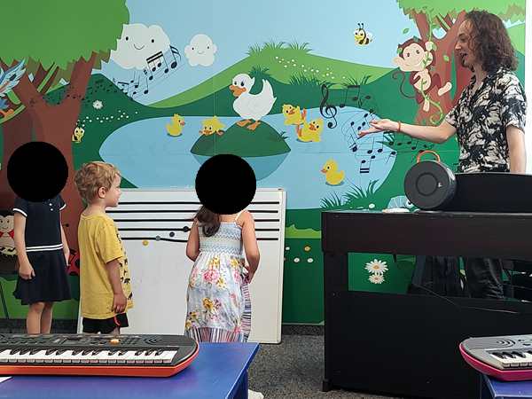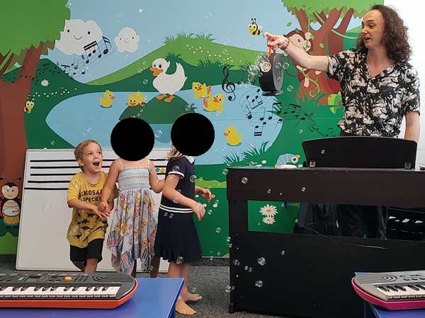 That's why he got a bubble machine out to start with. He played the piano with one hand, while holding it with another hand, and asked them to pop as many bubbles as possible, while he was singing. They were enjoying that.