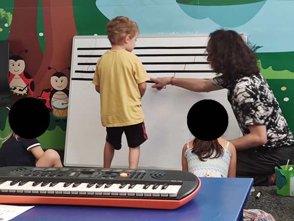 Then they went up front, and they drew the notes on the board. He also reviewed the different notes in terms of length.