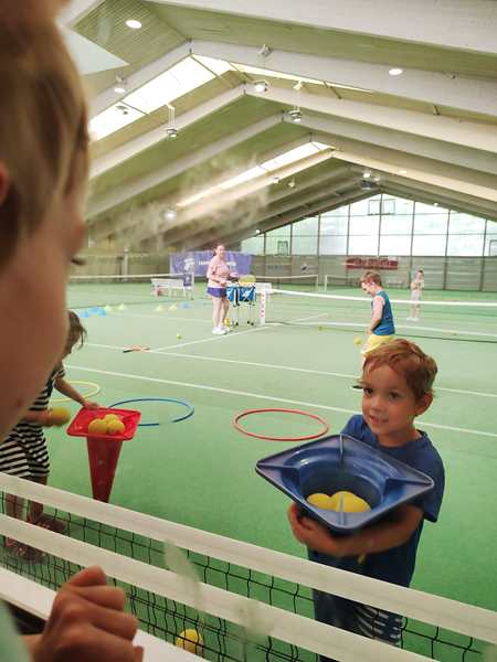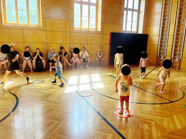 Tammy and Emmy got their backpacks and scooters, and off we went. It actually turned out that Tammy had NOT picked up her backpack, so it will spend the weekend at the kindergarten. I could tell that they were tired after an early morning and all day at the zoo. Emmy fell right in the beginning and cried for a while until I stopped and comforted him. We had to get to the bus stop and their tennis class in time. At the bus stop, a lady was handing out small cans of drinks for free, which was nice. We had just missed a bus and had to wait for the next one. We got the perfect seats in the last row, thank God. The kids were very tired, which was visible. Tammy leaned against me and Emmy actually fell asleep. It was a 17-minute bus ride. He was not happy, when I had to wake him up, as he'd only slept a few minutes.