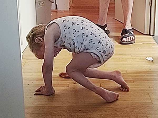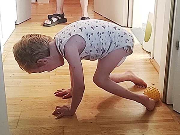 In the evening, Sammy wanted to show me a new skill, something I had never seen him do before, and I was really impressed as I had not thought he was possible to do this. He actually not only got on all fours, but pushed his knees up into the air, so that only his hands and feet were on the floor, like with a push-up. I was very impressed!