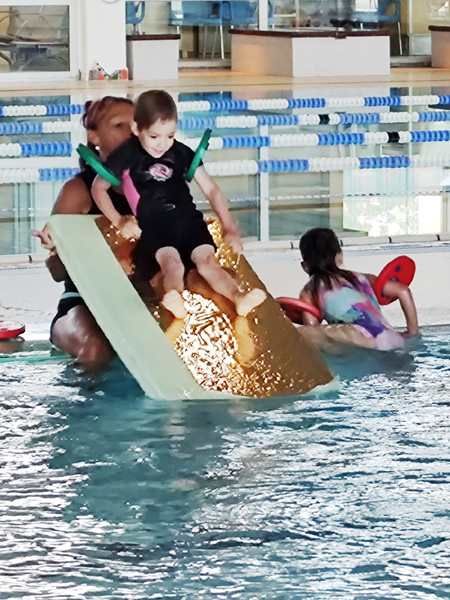 A few minutes before 10 am we went inside. The inside pool was closed except for the swim classes. Emmy had forgotten his googles last time and was really glad, when the teacher had them, so he got them back. At 10 am she started her class with the greeting song. Then she had them swim on their bellies as well as on their backs. They're now very close to being able to swim all by themselves. The boys had neoprene suits on because the water was so cold, but Sammy was still too cold to be in the water rather quickly and got out with Daddy. Emmy was also too cold at some point, and so was Tammy. All three were still enjoying the slide the teacher had for the kids. In the end, they were glad, when the class was over, and we all got out right away to go outside and warm up in the sun.