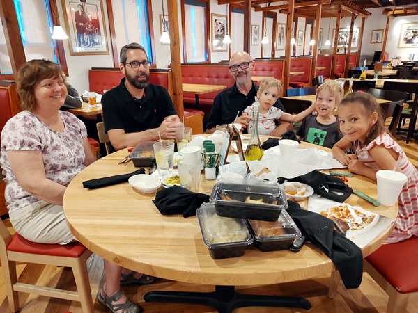 By 1:15 pm we were back home. Tammy was very tired, given the short night, and the two of us lay down for a nap, while Randy and the boys were in the living room and playing. We slept for a while. Then we got up and left the house again just after 3 pm.