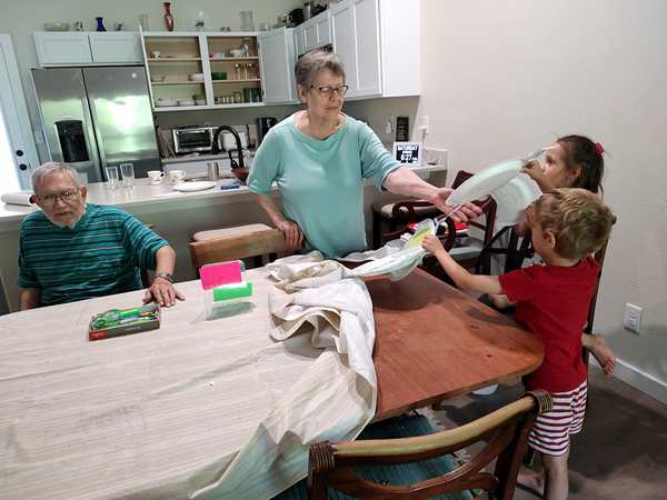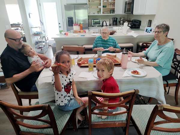 Then it was dinner time, and we all sat down at the table to eat leftovers. We enjoyed our time with our hosts. Emmy then wanted me to play tic-tac-toe with him, and I did a few times, then Tammy started playing with him, and I went back to our room to relax. At 7:30 they took a bath, then we read a story together, and I prayed or them. Then it was bedtime for them and time to turn the computer on for me. I worked on today's pictures at first, then started writing. Now it's midnight, and I hope to go to bed soon.