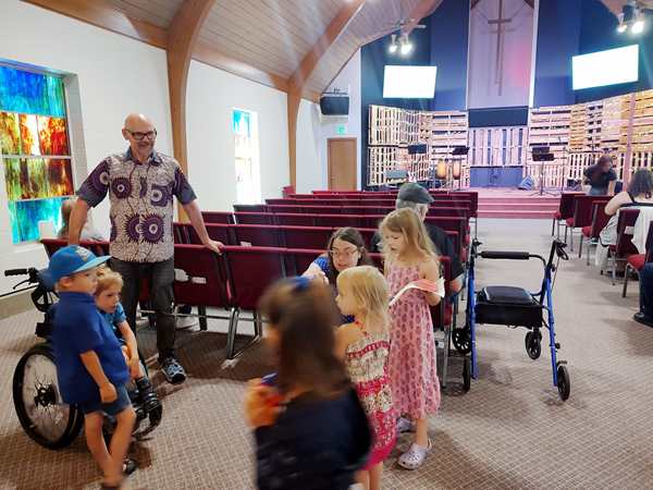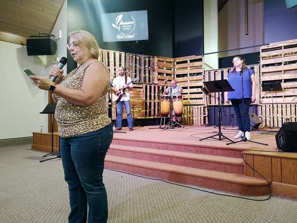 At 10:30 the kids' program as well as the service started. Randy went with the kids to the kids' program but ended up in the nursery with Sammy. In the sanctuary, we had half an hour of worship that I enjoyed greatly. Then they a had a send-off for a member who was moving then the pastor introduced me. I then came to the front to speak, and I had an interpreter for the Spanish-speakers among the congregation. I didn't show my video presentation this time. I prayed and then shared what God has done these past 22 years. My voice broke and tears came when I shared how many churches and believers there now are because one person said yes to God's calling. I then started telling stories as well as quoting Scriptures, focusing on perseverance. One person later said that the gist of my message was that God is all we need, just holding His hand and going with him.