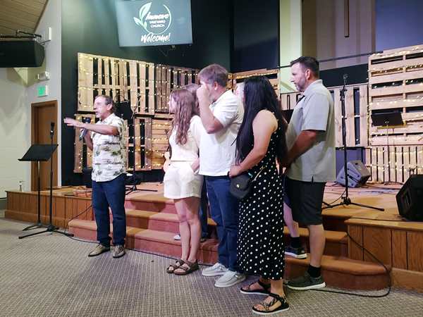 With the interpreter I had less time, and I kept talking and talking. When the pastor moved to the front, I knew it was time to come to an end even though I had not told all my stories. I finished with a resurrection story, then the worship team returned, everyone got up and I prayed over everyone. Then the pastor came up front and wanted to pray for me. He did, and the service was over. I was surprised when no one came to the front to get prayed for, but also glad I could go to our table. I did pray for someone's healing there and sold two books in total.