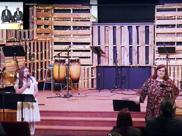 We arrived at church around 9:50 am. It was great to see the pastor again who had served on the board of the ministry in the past. We had last seen him and been at the church during our last US trip two years ago. I set up the Mali table, gave my pictures to the tech guy, and put my stuff down on the front row. Tammy was cold and got her jacket out of the car. Our hosts had also decided to come, and we saw our former secretary whose church this is, as well as some other people.