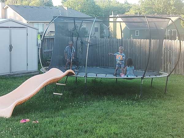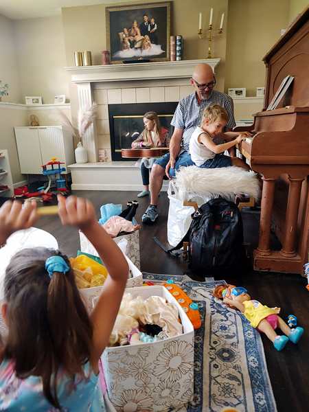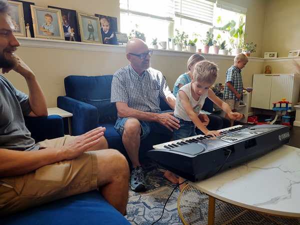 Just after 3 pm we arrived at our destination in the south-east of Kansas City. For the next 12 days we're staying with a family of 6 that we already stayed with 2 years ago. It was great seeing them again. We went inside into a small living room, where there were lots of toys that the kids immediately started exploring. We were also talking with each other while they were playing. Sammy enjoyed the piano and the keyboard.