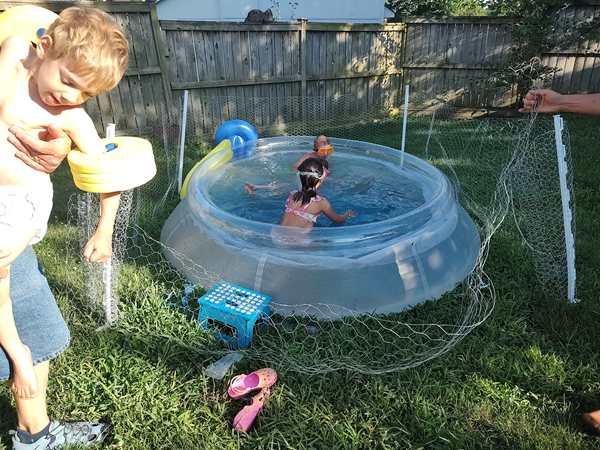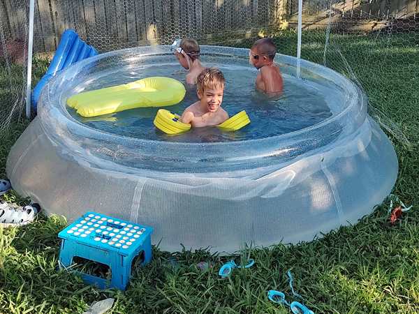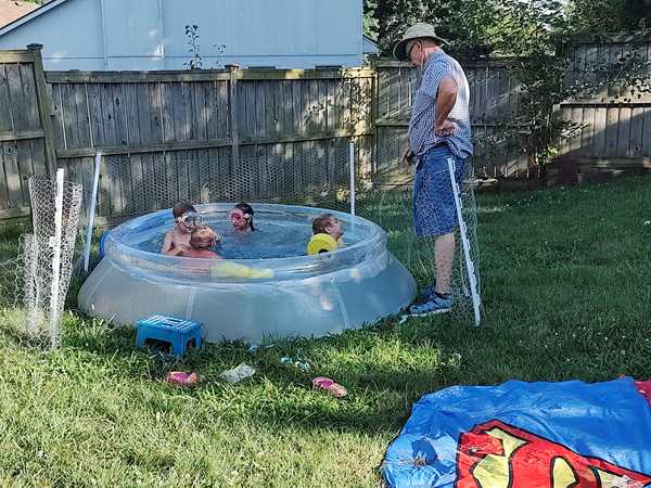 Then the kids came saying they were going into the small pool in the garden so they put their swimsuits on. I went with them to see and take some pictures, then I returned inside and continued working.
