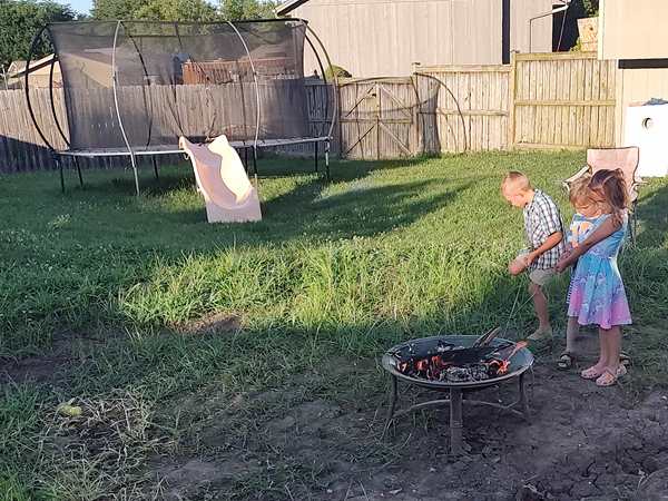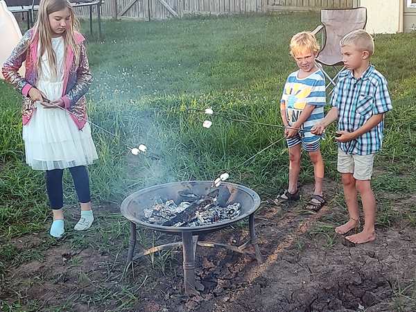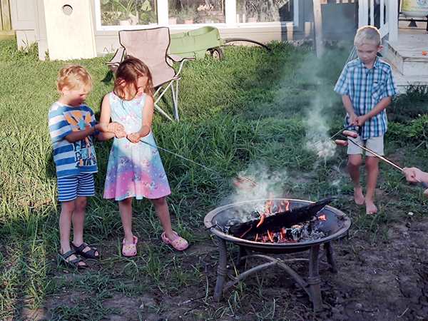 Then the kids were given marshmallows to put on their sticks and again, they held them into the fire. Emmy was then told how to make a smore with a cracker and chocolate, and he said that he liked it. Tammy was still not feeling well and not interested in eating anything at all.