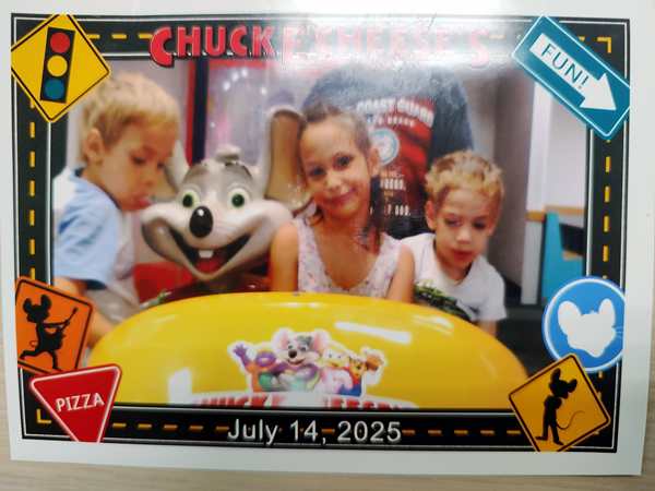 At 12:15 pm we left the house together and drove over half an hour to the Kansas side of Kansas City. I closed my eyes in the car as I was so very tired. We reached our destination just before the agreed-upon time of 1 pm. Tammy and I were approaching the entrance of Chuck E. Cheese when my friend drove up in her car. My other friend was already inside the restaurant. While I had heard a lot about this place, I had never been to one. It's a restaurant for kids; really more of a playground that also has food.