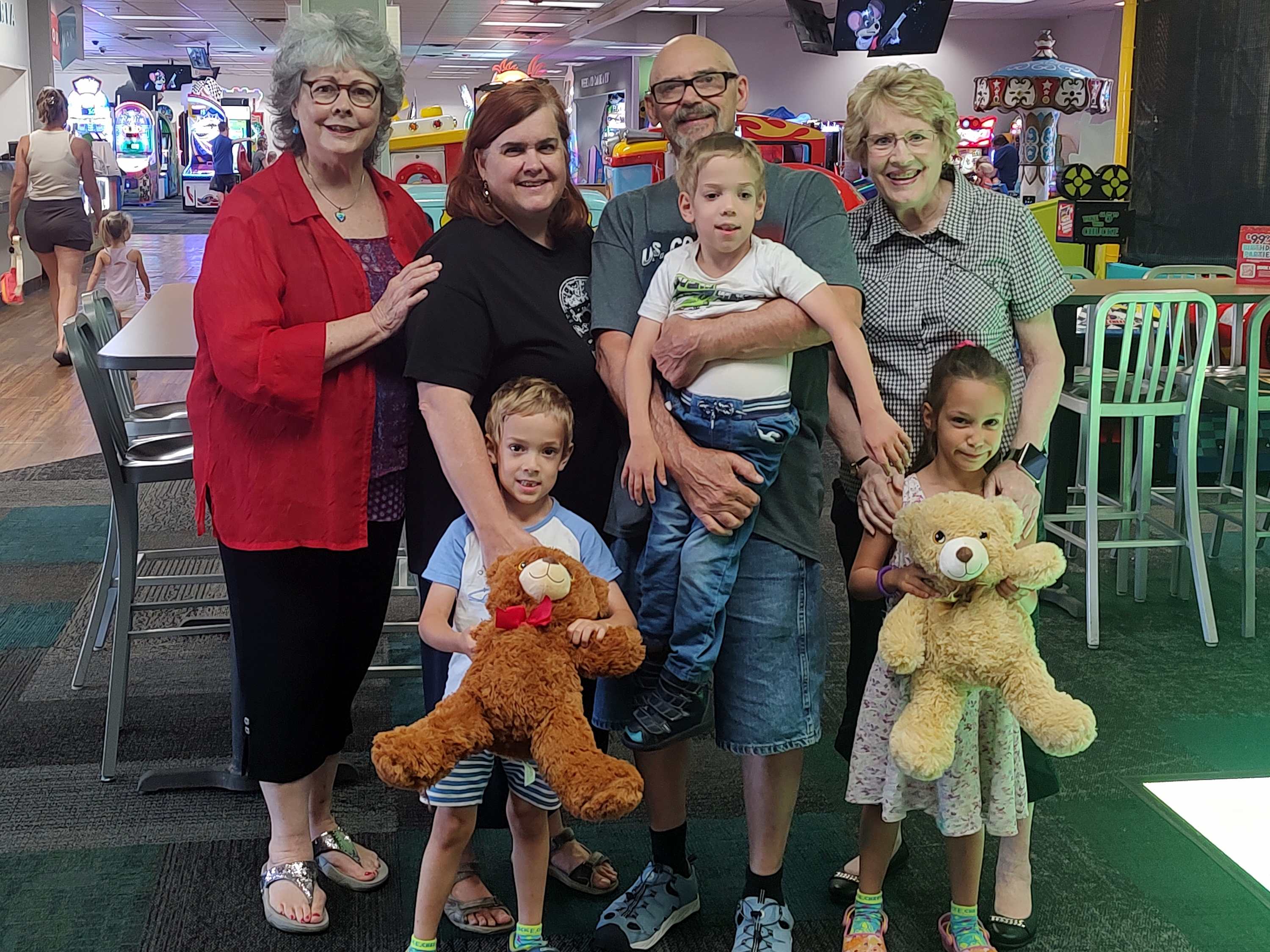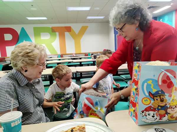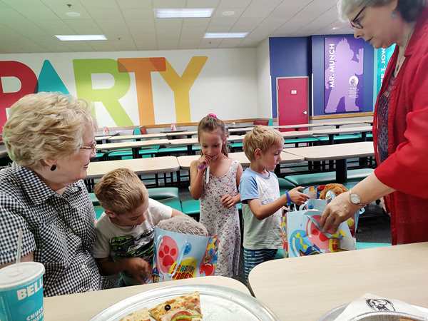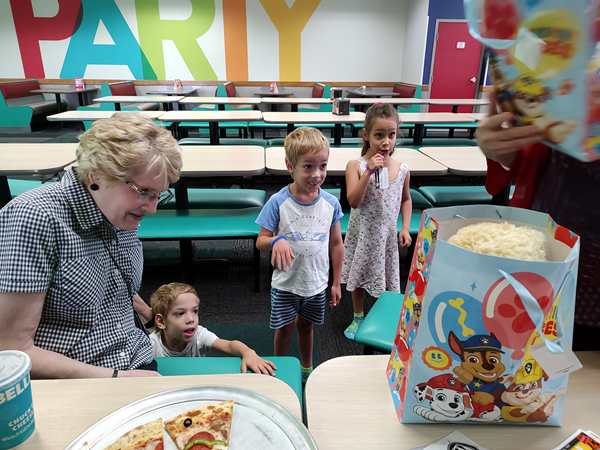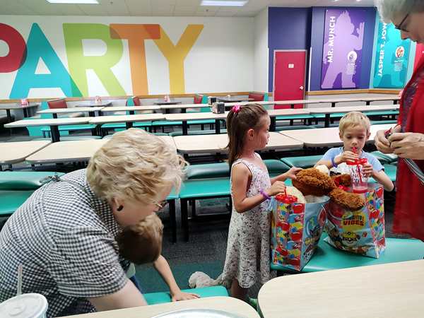 Once we were all done and it was time to move on, one of my friends got gift bags out for the kids. They were all eager to find out what was in those Paw Patrol bags. They each got a big, cuddly teddy bear, drinking cup, coloring book, crayons and glowsticks. What wonderful gifts! They were very happy.