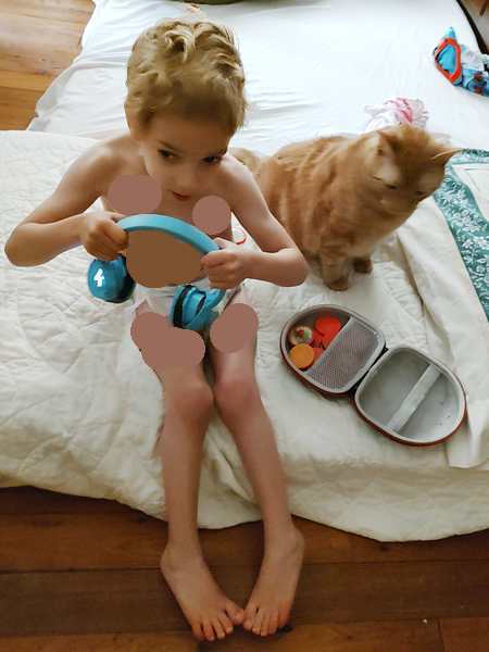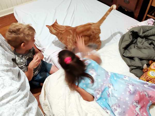 Day 2132. As expected, the kids were up early because of jetlag, but they had slept all night which was great. The cat came into the room, when we opened the door, much to the kids' delight. Sammy was still a little wary of the cat.