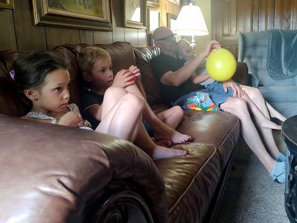 Someone turned the TV on for the kids, while I sat on the chair I always sit on. Randy had also bought balloons for Sammy and started blowing them up and letting them fly. Sammy was having so much fun. I then got involved in the game, making Sammy laugh even more. We had so much fun together.