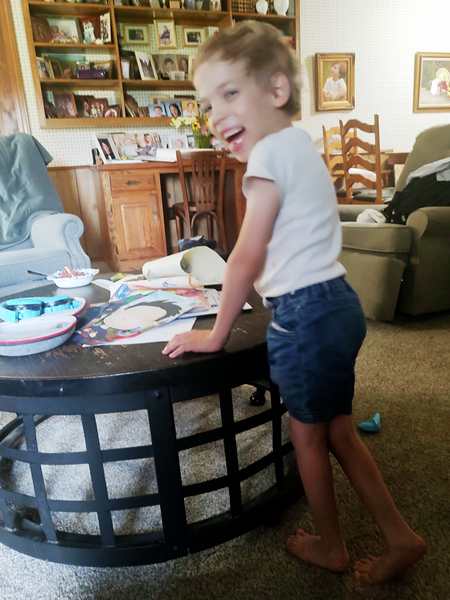 Then it was dinner time. We had some corn, fried chicken and potato casserole. Tammy ate everything on her plate, while Emmy hardly ate anything. Sammy was very hungry too and ate a lot. Then he was ready to continue playing with me which we did, while the other kids were watching TV. In the end he stood up with the help of the table and showed that he could stand without holding on with his hands.