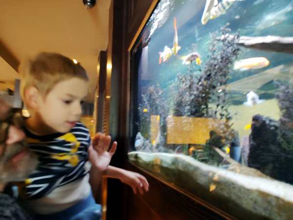 At 12:30 pm we arrived at the American restaurant in Columbia, MO, where we were meeting our friend. As it was a Saturday, the place was very busy. I put our name in and was told it would be about 10 minutes. Then we sat down and waited. I got the message from my friend that she had arrived at the same time as the restaurant's that our table was ready. Together we sat down and started looking at the menu. I had already done so in the car to be ready to order but they had no pasta and the lunch menu was not for Saturday so we had to change our plans. We ordered, and then we finally got to talk. We were disappointed she hadn't brought her husband and her baby, but it was sure good to catch up with her. I wished we could have had more time. The kids enjoyed their food as they had already been very hungry - even before arriving and then it took an hour for the food to come out. So we ended up having little food to take home with us. Before and after the kids were eating, they were on their tablets. Sammy was in a baby chair next to our friend and had a good time interacting with them.