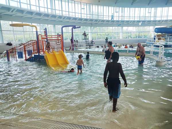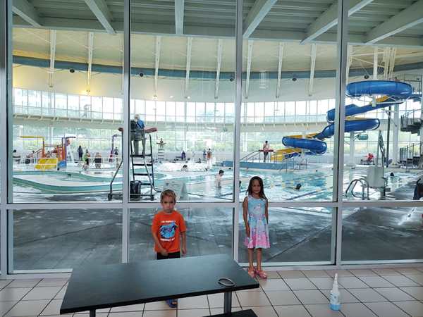 It was 3 pm, and we drove 4 minutes to the indoor swimming pool we wanted to go to. There are lots of waterparks in Kansas City but we hadn't had any time to go to any one of them. Having driven for two hours, that seemed to be the right place to go before driving back.