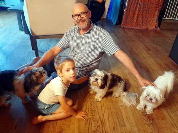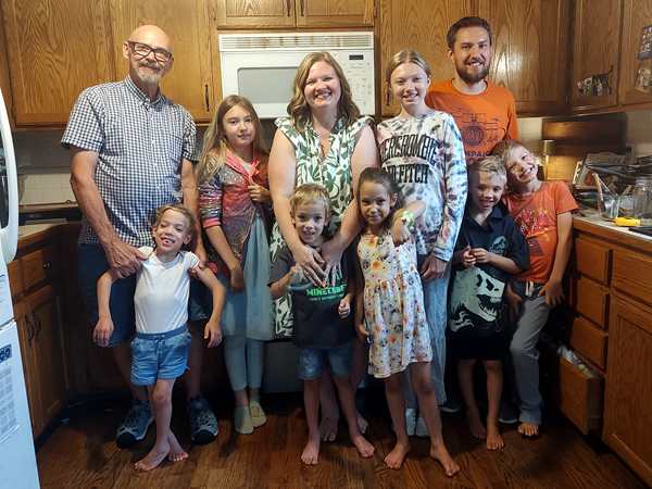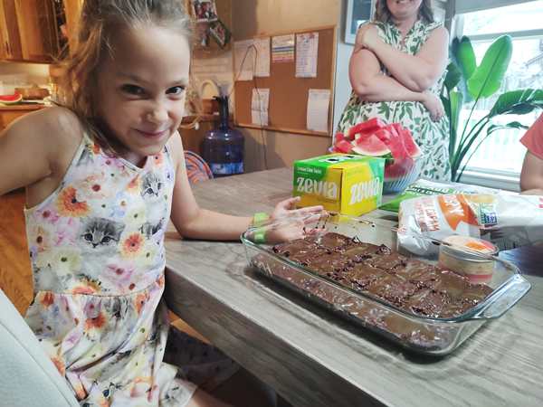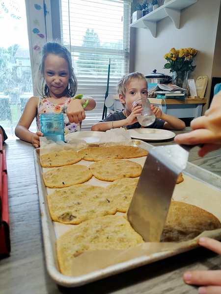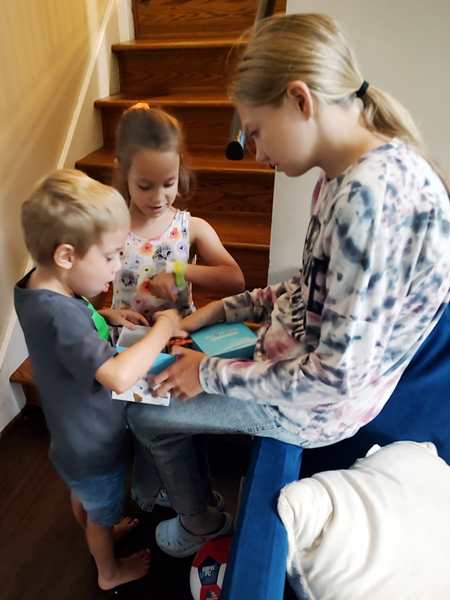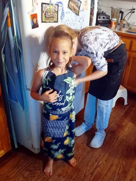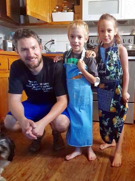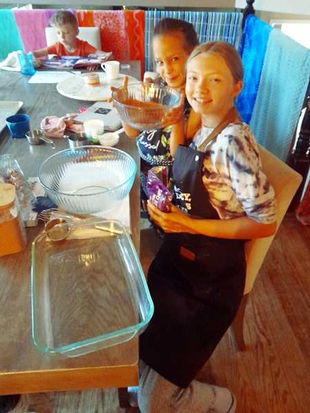 Day 2156. I had set my alarm for 8 am as I had a 9 am student and I still needed to finish packing before. However, the kids were up before that of course, and I got up as well to start packing. Once I was done, I sat down to prepare my lesson and got myself some breakfast. I then taught until noon. While I was teaching, the kids enjoyed the last few hours with the four kids of the house. Tammy and Emmy got aprons on and made chocolate chip cookies and brownies with the girls. Sammy loves the dogs, so he played with the dogs. Randy loaded everything into the car.