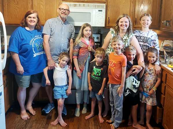 When I was done teaching, I packed up my computer and went upstairs. They had ordered pizza for a last dinner together with us. We all sat down to eat and talk and got to eat the dessert the girls had made. We had fun. I then remembered that I had not paid the toll for the day we arrived there as it had not worked on the website so I called their support number. It took me 15 minutes on the phone to sort it all out and get it taken care of. After we were done eating, we took a picture together, then it was time to say good-bye.