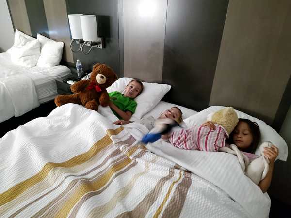 It was 1:15 pm, when we drove off, and we had just under 4 hours of driving ahead of us. The kids were on their tablets, and I turned the internet on for them for much of the time. Even Sammy is now at the point where he can watch Peppa Pig for a few minutes. I tried to sleep but never got more than a few minutes before someone woke me up again.