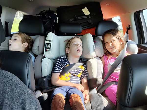 We had a two-hour drive. Tammy fell asleep after having eaten, and the boys slept until 5 minutes before our arrival. I tried to sleep but woke up every time Randy swerved too hard. Every time I asked him whether he was okay, awake and alert. Once the boys were up, I stayed up with them. I gave them the remaining food, and they ate some. They were so excited that we were about to arrive, especially Sammy.