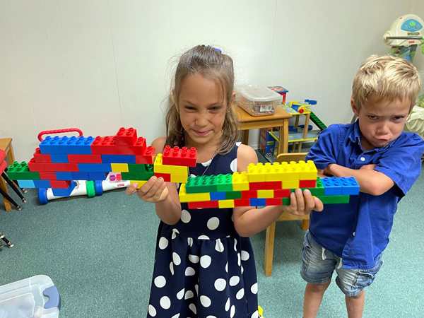 Emmy wanted to go play soccer with our friend, and Tammy joined them. They played for quite some time. In the meantime the rest of us were taking a break. Then Sammy said that he was hungry so I made a package soup for him and the others who ate it after they had come back inside. Then our friend made hamburgers for dinner. We had a good time eating and talking together. After dinner, Emmy still wanted to go on a boat ride but it was too late. They took the dog for a walk, we took a picture all together, then they got ready for bed. Then we sat down in the living room together where I read them a Bible story. Normally in German but this time in English as our friends were there as well and listening. I then prayed for them and put them to bed. Randy stayed with them until they were asleep.