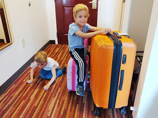 Day 2168. I had set my alarm for 8 am, but the boys were up way before that. I finally got up and warmed up some frozen breakfast egg dish we had bought in the supermarket; Emmy enjoyed it. Randy ran to the car to bring up some water bottles and picked up paper bags with our breakfast from the reception desk. They contained an apple, a bar and water each. That's all the breakfast they offered. I just ate some of the egg dish while preparing for my 9 am student. At 8:45 am I left them in the room to eat and went downstairs to the business center to teach there, hoping the internet would be better, plus it would be more quiet. What I was unaware of was that I still had my hotspot on so that I did my whole lesson using my hotspot instead of the terrible internet the hotel was offering. That's why it worked so well.